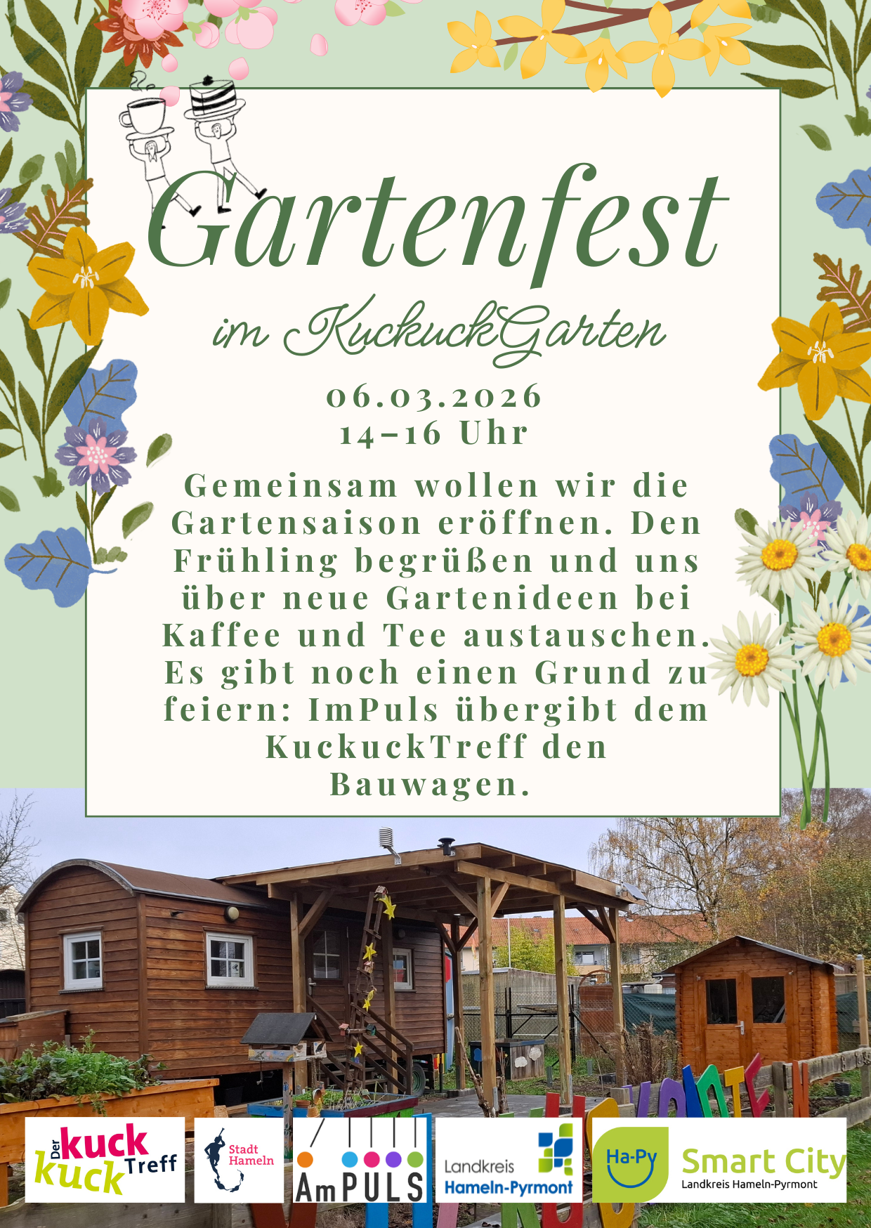 Ein besonderer Anlass zum Feiern ist an diesem Tag die Übergabe des Bauwagens an den Quartierstreff KuckuckTreff: Der Bauwagen ist nicht nur mobiler Treffpunkt, Material- und Gerätelager und Funktionsraum, sondern das Herzstück des KuckuckGartens. Bislang wurde er von der Impuls gGmbH betreut, ab dem 6. März übernimmt die Stadt Hameln die Pflege und Betreuung des Standorts und sichert das Angebot für den Stadtteil damit langfristig.